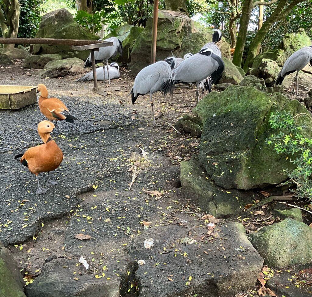 ラマやプレーリードッグ、カピバラ、フラミンゴの他、初めて名前を知った珍しい動物などがたくさんいました。なんとクジャクやリスザルなど一部の動物が、広い園内に自由に放し飼いされています。動物との距離が物凄く近い…。