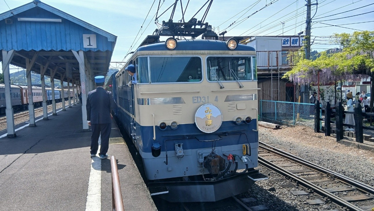 ブルートレインのヘッドマークを付けての編成で出発を見送ります